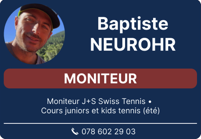 Le Club peut compter sur une équipe de trois professeurs qualifiés, passionnés par l’enseignement du tennis. Ils accompagnent les juniors comme les adultes, débutants ou confirmés, en proposant un encadrement adapté à chaque niveau.